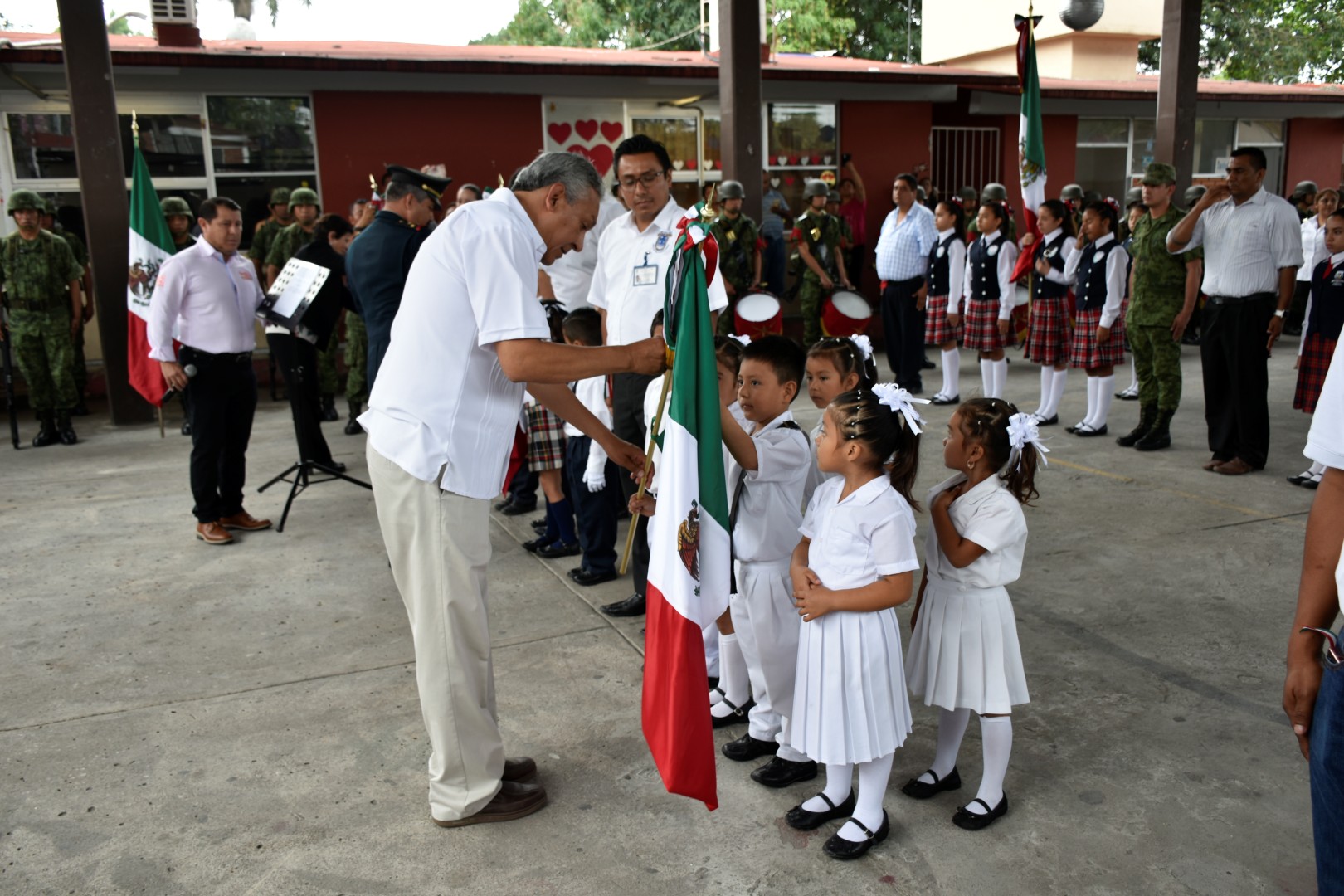 Durante este acto de abanderamiento de escoltas se realizaron los honores correspondientes, se presentó una breve descripción histórica de la bandera y el escudo nacional, así como de la letra y música del Himno Nacional Mexicano. Las 18 instituciones que reciben bandera son: 1 Centro de Desarrollo Infantil, 4 jardines de niños, 7 primarias, 2 secundarias y 4 preparatorias.