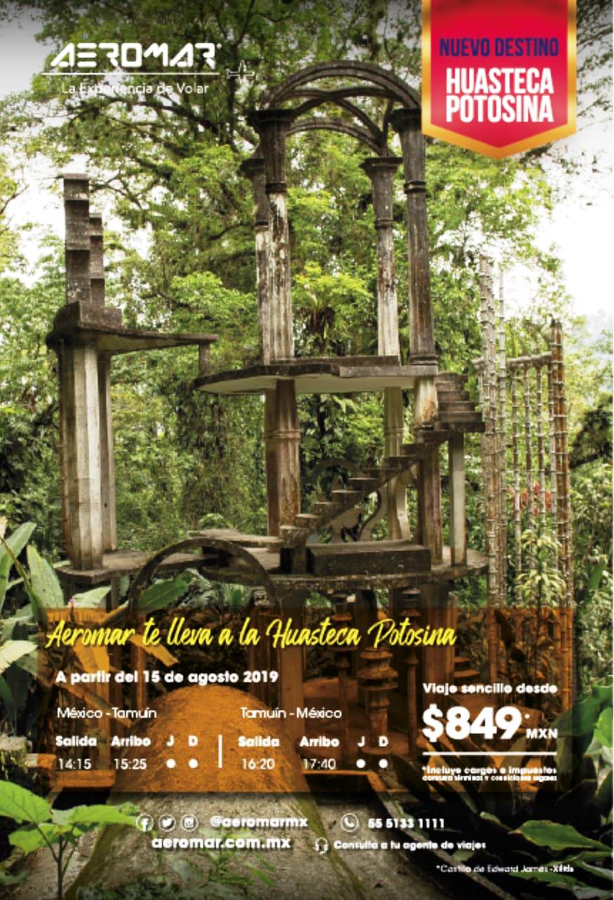 Por lanzamiento, la aerolínea Aeromar informó que se podrá reservar un viaje sencillo desde 849 pesos, lo que pone al alcance del turismo la grandeza del estado potosino.