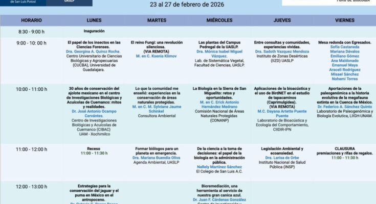 La Universidad Autónoma de San Luis Potosí, a través de la Facultad de Ciencias, inauguró el X Foro de Biología en el marco del XV aniversario de la Licenciatura en Biología, y culminará el próximo viernes 27 de febrero de 2026. El encuentro reunirá a especialistas en diversas áreas para dialogar sobre investigación, conservación, docencia y aplicación del conocimiento biológico.