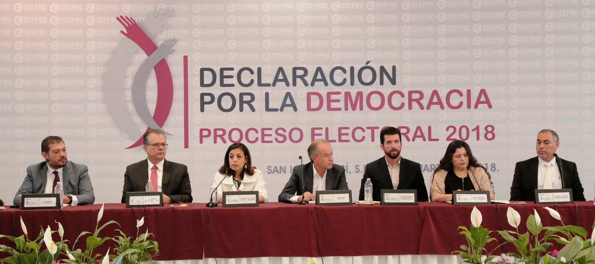 La Declaratoria señala que la democracia es una condición esencial para garantizar la protección de los derechos políticos electorales de los ciudadanos del estado de San Luis Potosí, por lo que la equidad y el adecuado desarrollo del Proceso Electoral 2018, son obligaciones fundamentales, no sólo de las autoridades electorales, sino también de cualquier autoridad del Estado en sus tres órdenes de gobierno, de la Fiscalía Especializada para la Atención de Delitos Electorales, de los Partidos Políticos así como de los demás actores políticos que participan en la contienda electoral.