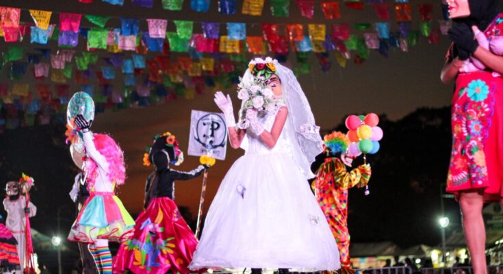 CIUDAD VALLES, S.L.P. – La comparsa de huehues El Consuelito hizo vibrar la tarima al ritmo de los sones tradicionales del Día de Muertos. La presentación se llevó a cabo en los terrenos de la Feria la tarde de este sábado 1 de noviembre, como parte de la demostración de comparsas infantiles del Festival Xantolo 2025.
