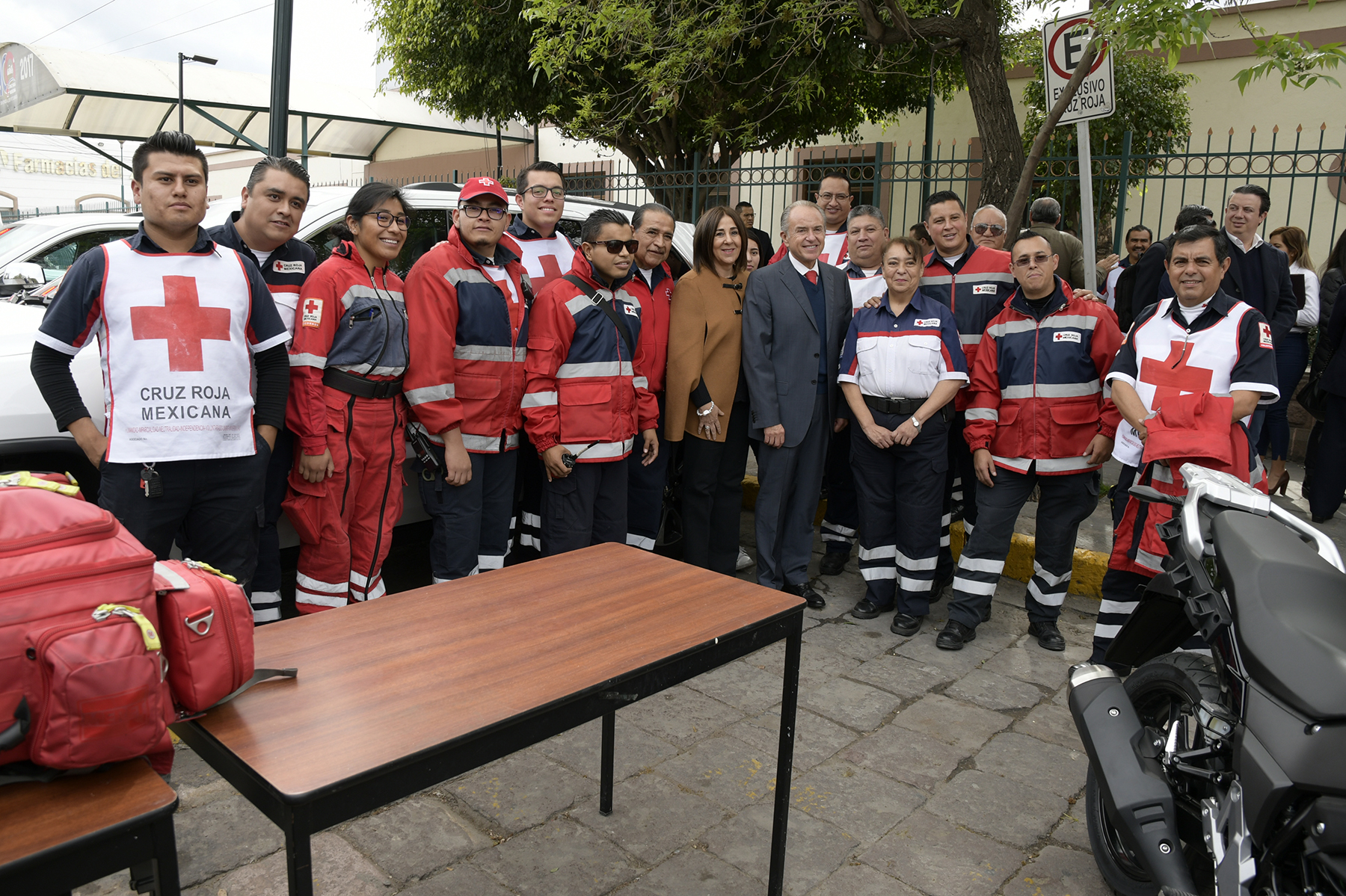En un acto posterior, el Director General de la Cruz Roja Mexicana, José Antonio Monroy Zermeño, presentó las cinco motocicletas equipadas para atención en primeros auxilios, que ahorrarán recursos y mejorarán los tiempos de llegada a zonas de incidentes, que forman parte de las primeras unidades de su tipo utilizadas por el organismo a nivel nacional.