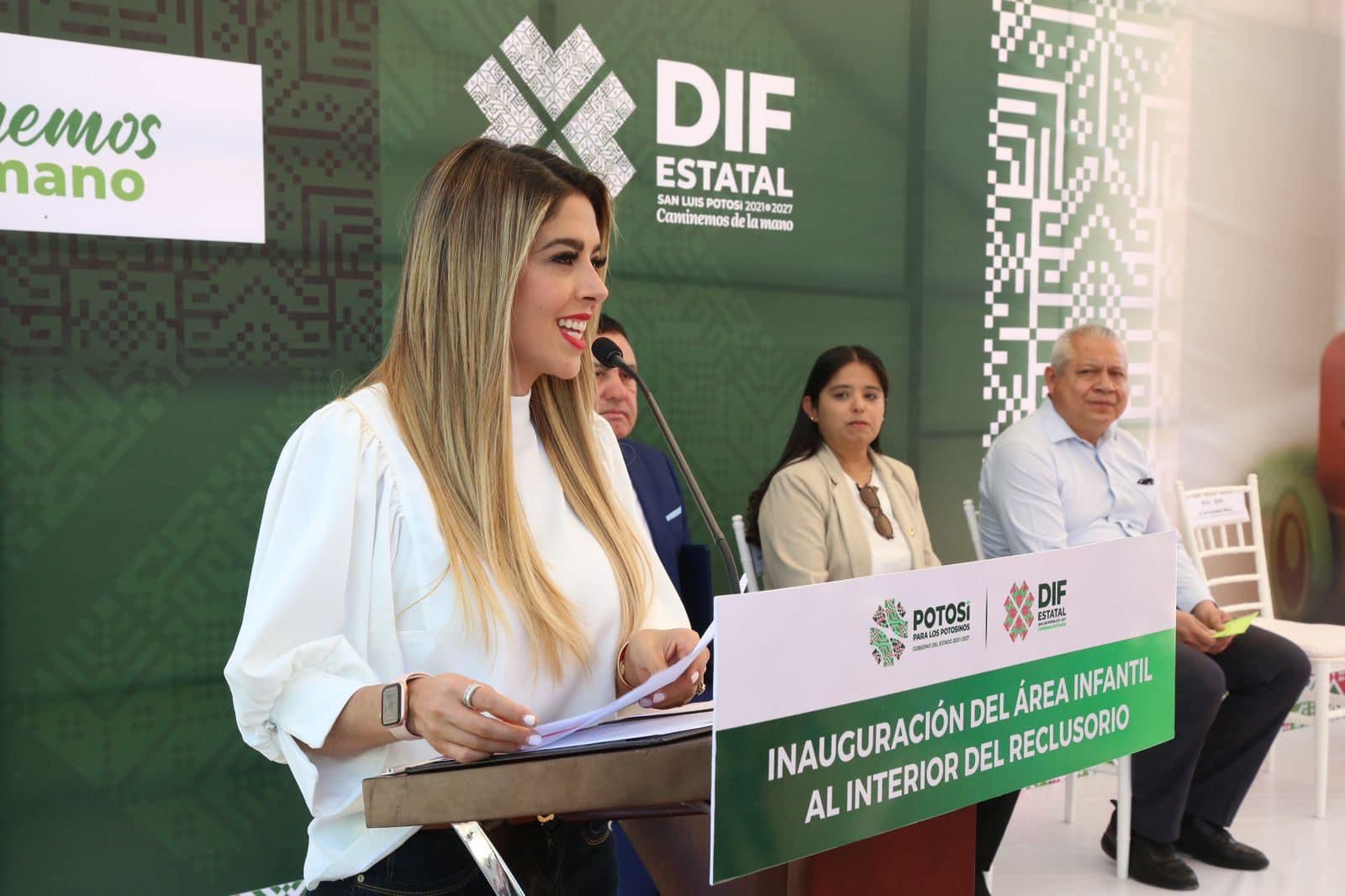Ruth González Silva, presidenta honoraria del Sistema Estatal para el Desarrollo Integral de la Familia (DIF), inauguró la sala infantil con biblioteca-ludoteca “Mis primeros pasos con amor”, que brindará atención a infancia bajo tutela de madres privadas de su libertad, al interior del Centro de Reinserción Social de La Pila, a través de un servicio que favorezca el desarrollo biopsicosocial de las niñas y niños como lo ha definido el Gobernador de San Luis Potosí, Ricardo Gallardo Cardona.