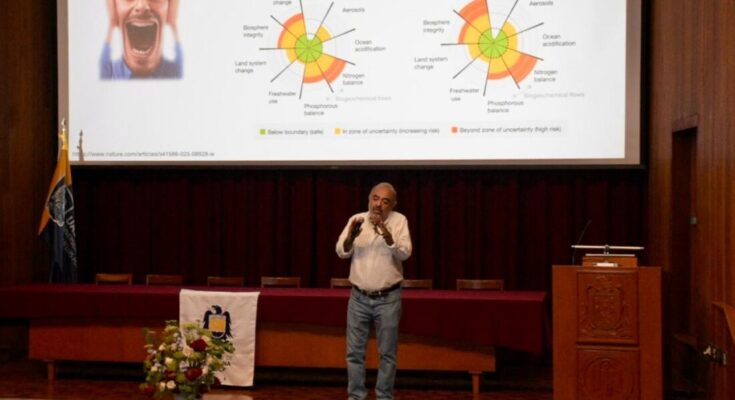 De acuerdo con el especialista en biología molecular, tres modelos de medición internacionales sobre los límites ambientales del planeta coinciden en que la Tierra se encuentra gravemente enferma. “El calor será insoportable durante al menos dos meses al año en muchas regiones del mundo”, explicó, al señalar que la explotación irracional del agua, el petróleo y la tierra ha llevado a un deterioro irreversible impulsado por la ambición humana.