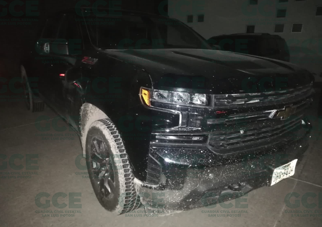 Cerritos, S.L.P.- En atención a un reporte ciudadano recibido en la Línea de Emergencias 911, respecto a la presencia de civiles armados en la localidad de Derramaderos, oficiales de la Guardia Civil Estatal (GCE) realizaron el hallazgo de un automotor con reporte de robo, dentro del cual había equipo táctico y droga.
