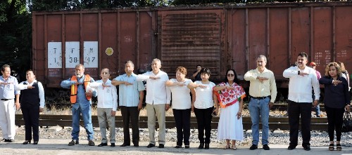 En el acto se conmemoró el CIX Aniversario del Día del Ferrocarrilero, este lunes 7 de Noviembre, y estuvo presente el Presidente Municipal Jorge Terán Juárez, Elba Azuara Ponce de la URSEHN, José de los Reyes Bolaños en representación de los Ferrocarrileros, además de regidores y síndicos, así como funcionarios municipales, integrantes de los clubes del INAPAM, entre otros.