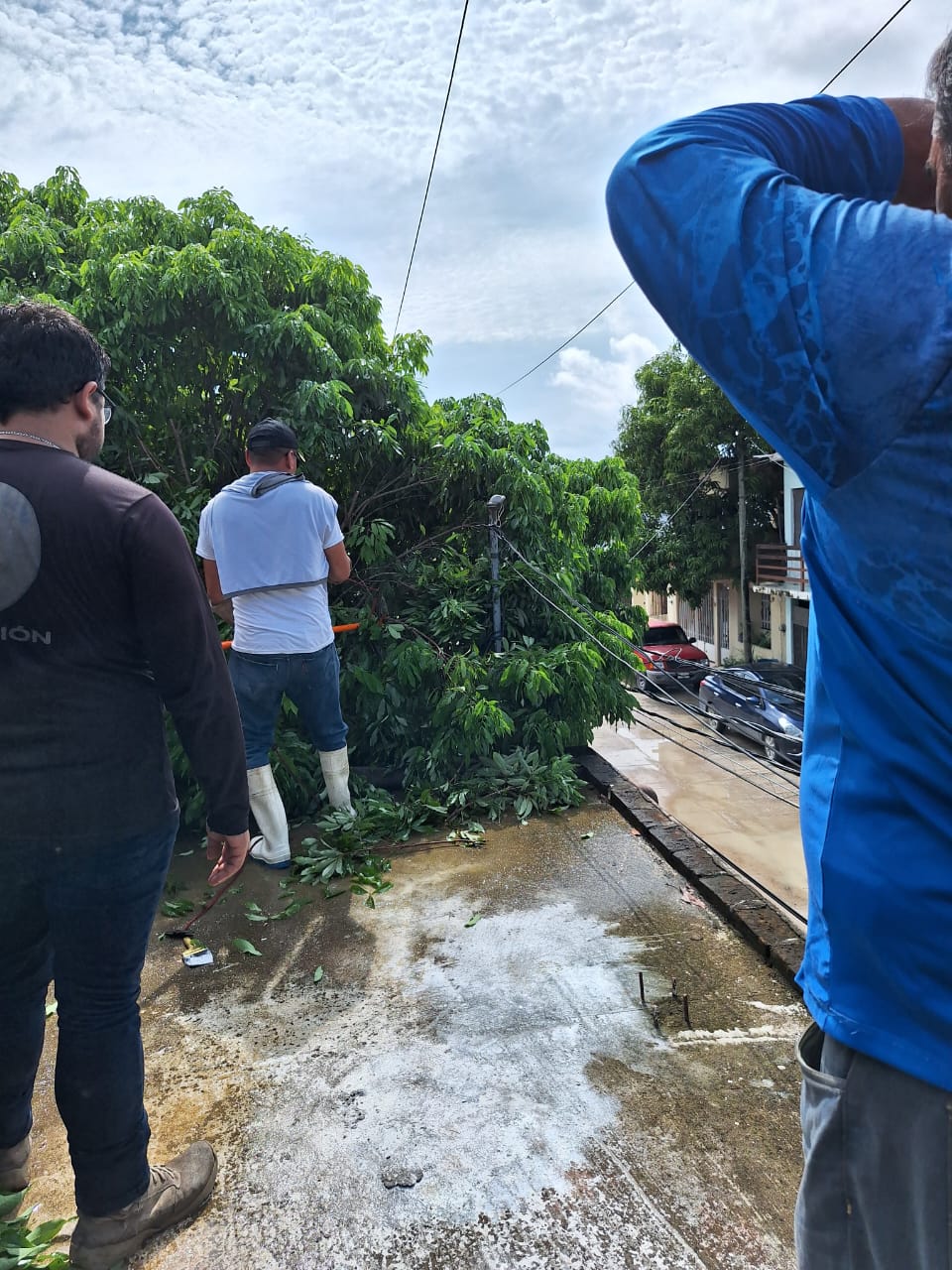 Se atienden reportes por árboles y ramas caídas en distintas colonias del municipio como son colonias Magisterial, Privada Jarrilla, y Pueblo Nuevo donde reportaban obstrucción, daño a cables de luz y daños a un taller eléctrico.