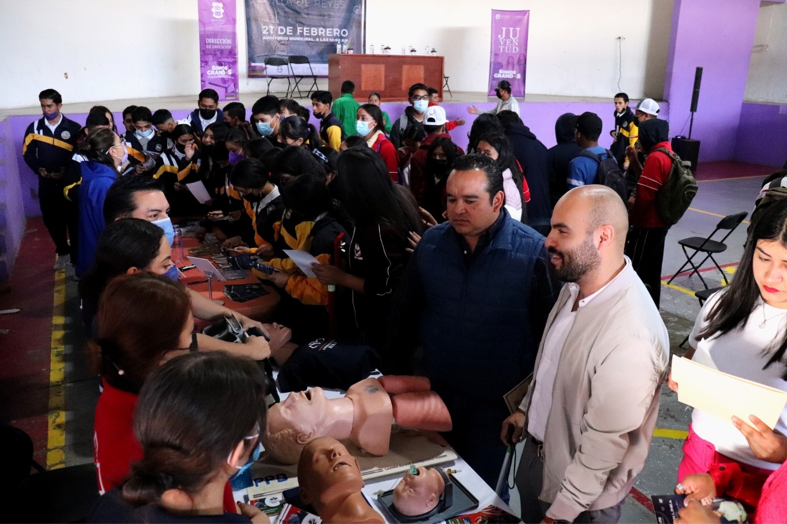 Villa de Reyes, San Luis Potosí.- En seguimiento al trabajo del Gobernador de San Luis Potosí, Ricardo Gallardo Cardona, para respaldar a las y los jóvenes mediante una atención integral para su pleno desarrollo, el Instituto Potosino de la Juventud (Inpojuve) ofreció en la Feria Vocacional de Villa de Reyes, a donde acudieron más de 600 jóvenes, todos sus servicios, descuentos y beneficios como, psicología, asesoría legal y contable, actividades deportivas, descuentos, tarjeta joven, entre otros.