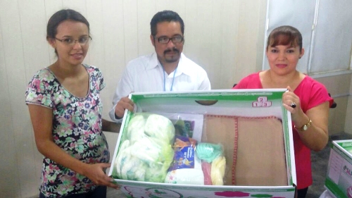 Ciudad Valles.- Con una breve ceremonia, la mañana de este jueves 24, Angélica Huerta de Terán, Presidenta del Sistema Municipal para el DIF de Ciudad Valles, acompañada de Alejandro González Lezama, representante de la Coordinación de Salud Reproductiva y  Socorro Rocha Méndez, Coordinadora de Gestión y Participación Social del SMDIF, realizaron la entrega simbólica de cunas de cartón para recién nacidos de las zonas con mayor marginación de nuestro municipio.