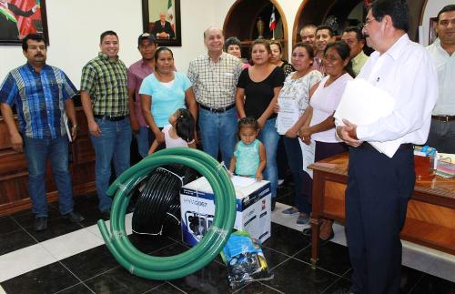 Ciudad Valles S.L.P.- El Presidente Municipal Juan José Ortiz Azuara, hizo entrega a los habitantes de la comunidad Prodigio de una motobomba a gasolina para la extracción de agua y reducir la distancia que normalmente hacían los beneficiarios para tener el vital líquido en su casa.