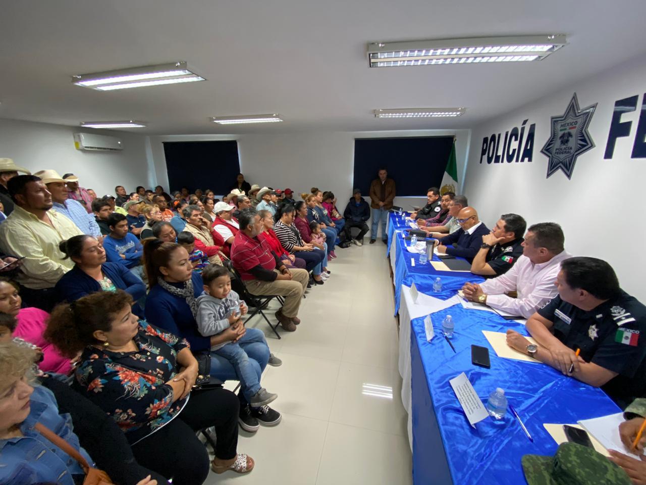 Leal Tovías expresó que, siguiendo la instrucción del Gobernador Juan Manuel Carreras, se llevó a cabo este encuentro, que busca fortalecer la vigilancia y resguardo, además de atender los requerimientos integrales para las y los habitantes de esta comunidad y localidades cercanas.