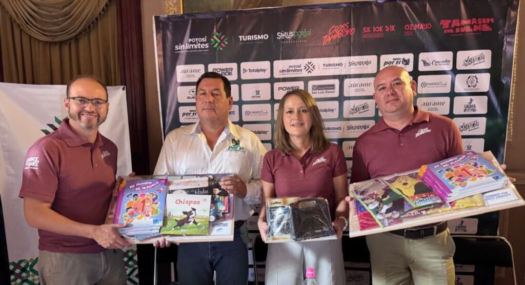 Tamasopo.- El pasado día 14 de abril en el marco de la rueda de prensa de la edición 2026 de Cross Tamasopo, “Huasteca Kilómetro Cero Asociación Civil” hizo entrega de material e insumos de apoyo hacia la Unidad Básica de Rehabilitación de Agua Buena que pertenece al Sistema Municipal para el Desarrollo Integral de la Familia.
