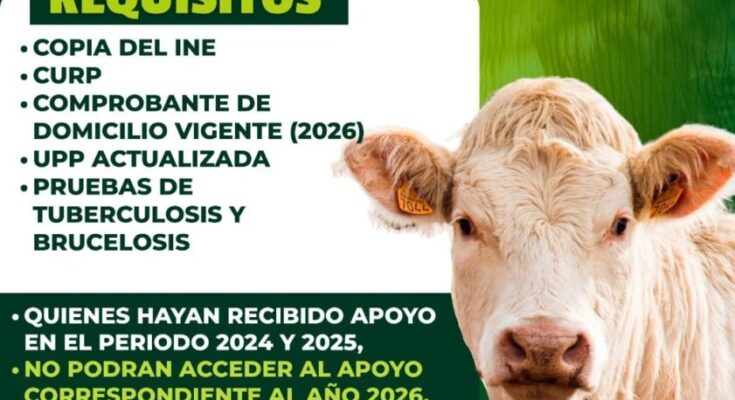 Ya se encuentra abierta la ventanilla para el Programa de Mejoramiento Genético 2026, por lo que las personas interesadas deberán presentar copia de INE, CURP, comprobante de domicilio vigente, UPP actualizada, así como pruebas de tuberculosis y brucelosis.