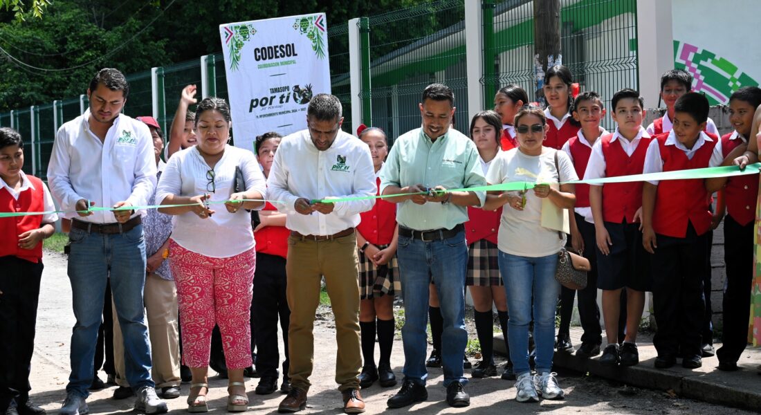 Inauguración de obra en la escuela primaria Emiliano Zapata de Tambaca