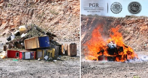 En total, se incineraron 323 kilos 359 gramos 200 miligramos de marihuana, 275 gramos 900 miligramos de metanfetamina, 120 gramos 600 miligramos de cocaína, 47 kilos 26 gramos 400 miligramos de peyote (mezcalina), mil 469 unidades psicotrópicas, 83 unidades de estupefacientes (metilfenidato), 60 plantas de marihuana y 3 objetos del delito.