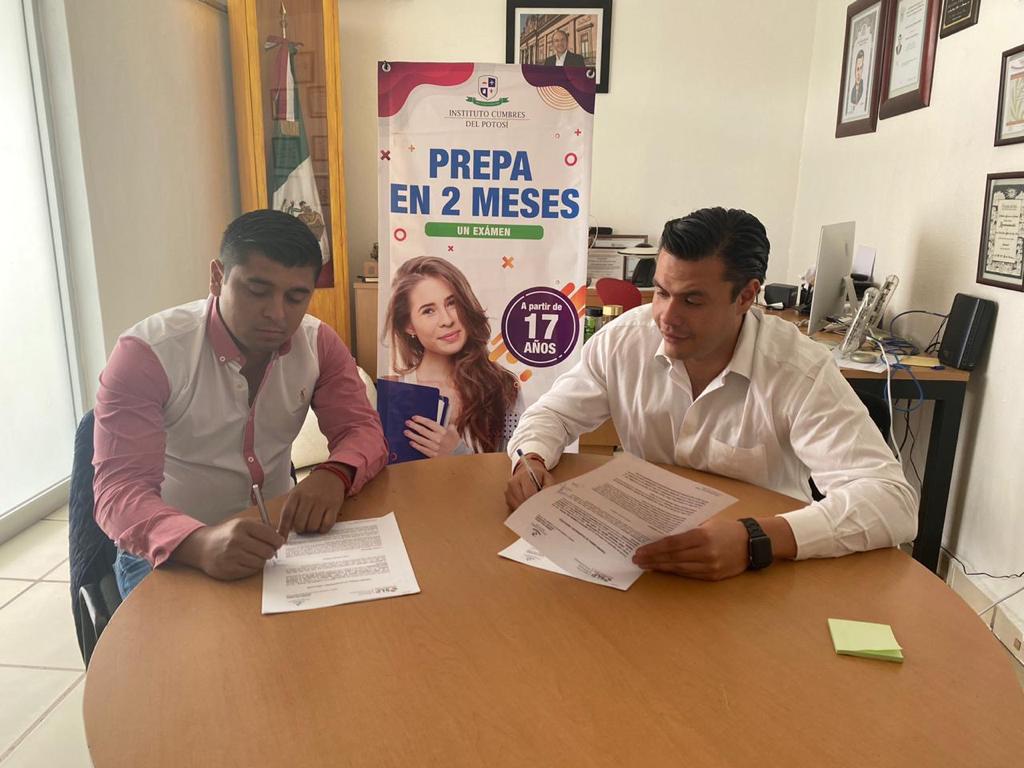San Luis Potosí.- El Instituto Potosino de la Juventud firmó convenio con el Instituto de educación Cumbres del Potosí, a través del que se podrán obtener becas de hasta el 35 por ciento de descuento, con el objetivo de que las y los jóvenes que deseen terminar sus estudios de preparatoria puedan concluirlos, informó Luis Fernando Alonso Molina, titular de la dependencia.