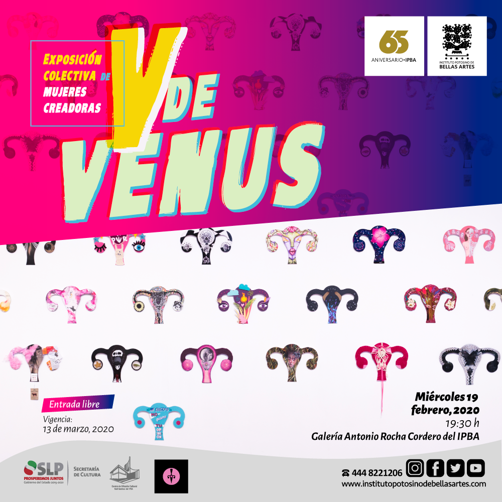 San Luis Potosí.- El Instituto Potosino de Bellas Artes (IPBA), invita a la inauguración de la exposición colectiva de mujeres creadoras “V de Venus”, que se llevará a cabo este miércoles 19 de febrero a las 19:30 horas en la Galería Antonio Rocha Cordero del recinto, con la entrada libre.