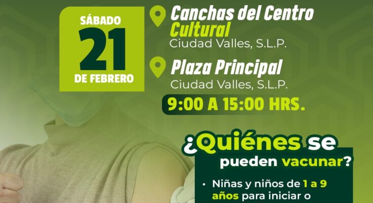 El H. Ayuntamiento de Ciudad Valles, a través de Servicios Municipales de Salud y en coordinación con la Jurisdicción Sanitaria No. V, invita a la ciudadanía a participar en la Jornada de Vacunación con énfasis en sarampión, con el objetivo de garantizar la protección de las familias vallenses.