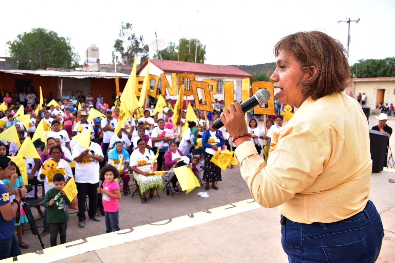 En ambas comunidades, la candidata estuvo acompañada de su compañera de fórmula Graciela Gaytán Díaz, el candidato a la diputación federal Ricardo Gallardo Cardona y el presidente del Comité Estatal del PRD, José Luis Fernández Martínez.