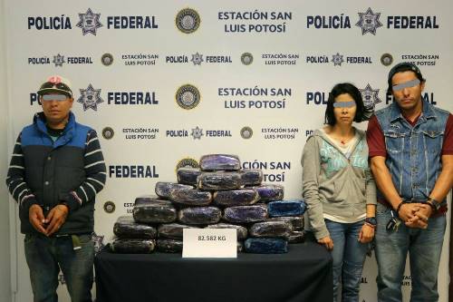 San Luis Potosí.- Comoparte de las acciones de seguridad implementadas por la Policía Federal en tramos carreteros en el estado de San Luis Potosí, elementos pertenecientes a la División de Seguridad Regional detuvieron a tres personas que trasladaban de manera oculta en bocinas, 32 paquetes con mas 82 kilos de droga cristal.