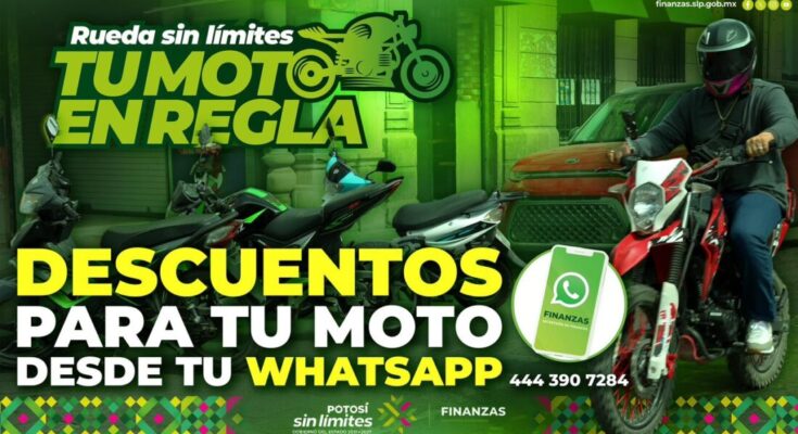La Secretaría de Finanzas (Sefin), dio a conocer que las y los propietarios de motocicletas pueden regularizar su documentación de manera fácil, rápida y sin intermediarios, enviando un mensaje de WhatsApp al 444 390 7284, con el programa “Tu moto en regla, rueda sin límites”, que del 11 de noviembre al 10 de diciembre de 2025 otorga descuentos en adeudos totales, multas y recargos.