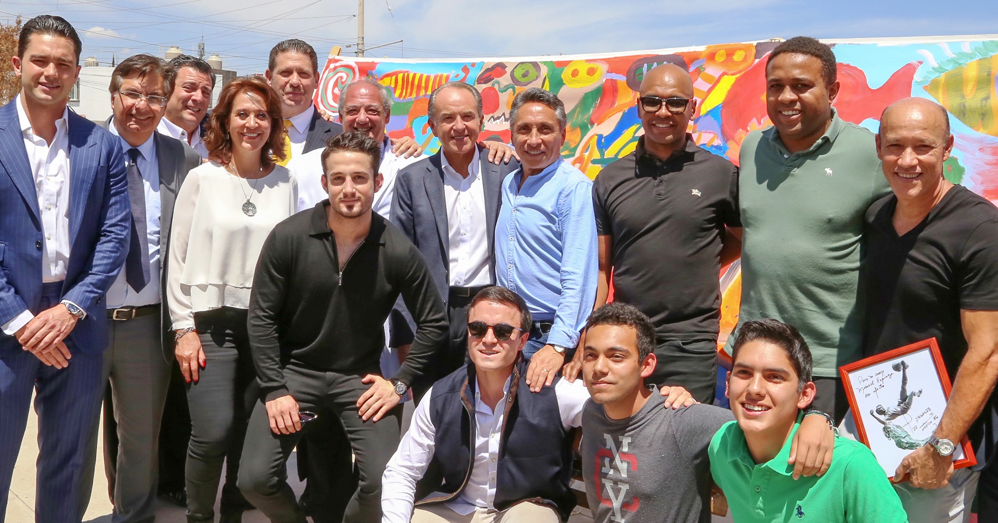 San Luis Potosí.- En el marco del encuentro de fútbol “Compromiso por la Paz 2018” que se llevará cabo este sábado en territorio potosino, entre leyendas internacionales y ex jugadores del equipo Atlético de San Luis, el Gobernador del Estado Juan Manuel Carreras López y el director mundial de Scholas Ocurrentes José María Corral, realizaron un recorrido por la exposición “Una bella jugada” con la participación de alumnas y alumnos del Instituto Potosino Marista.