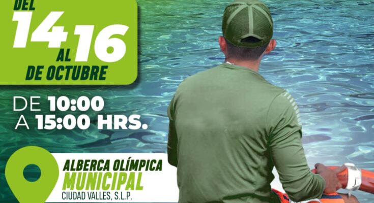 La Dirección de Turismo del H. Ayuntamiento de Ciudad Valles, que encabeza Vernice Soria Treviño, invita a todos los prestadores de servicios turísticos a participar en el Curso de Primeros Auxilios y Rescate en Agua Estática, que se llevará a cabo del 14 al 16 de octubre, en un horario de 10:00 a 15:00 horas, en la Alberca Olímpica Municipal.